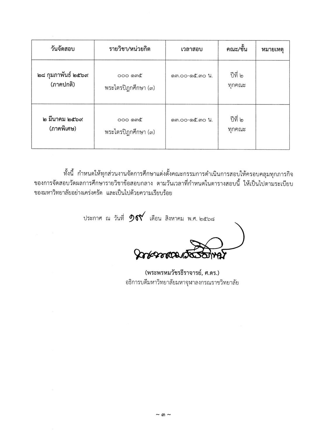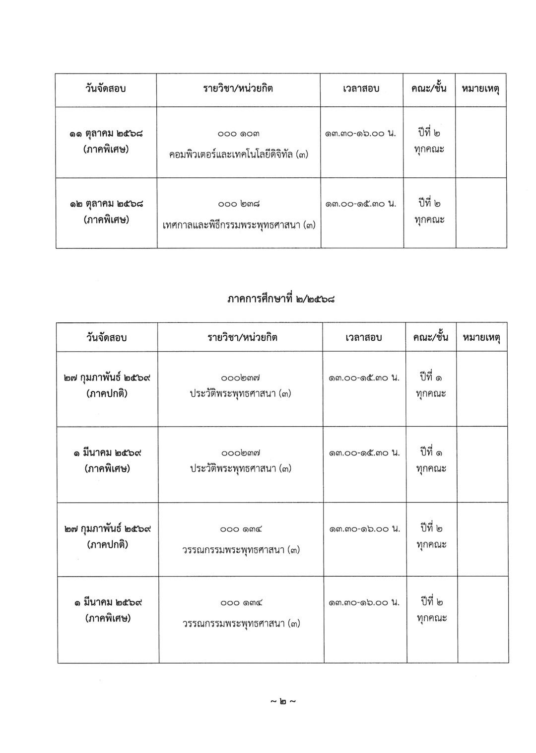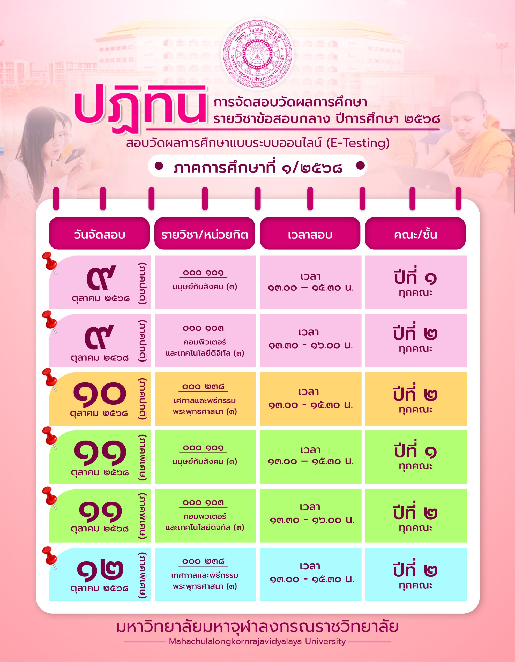 ปฎิทินการสอบวัดผลการศึกษารายวิชาข้อสอบกลาง ปีการศึกษา ๒๕๖๘
