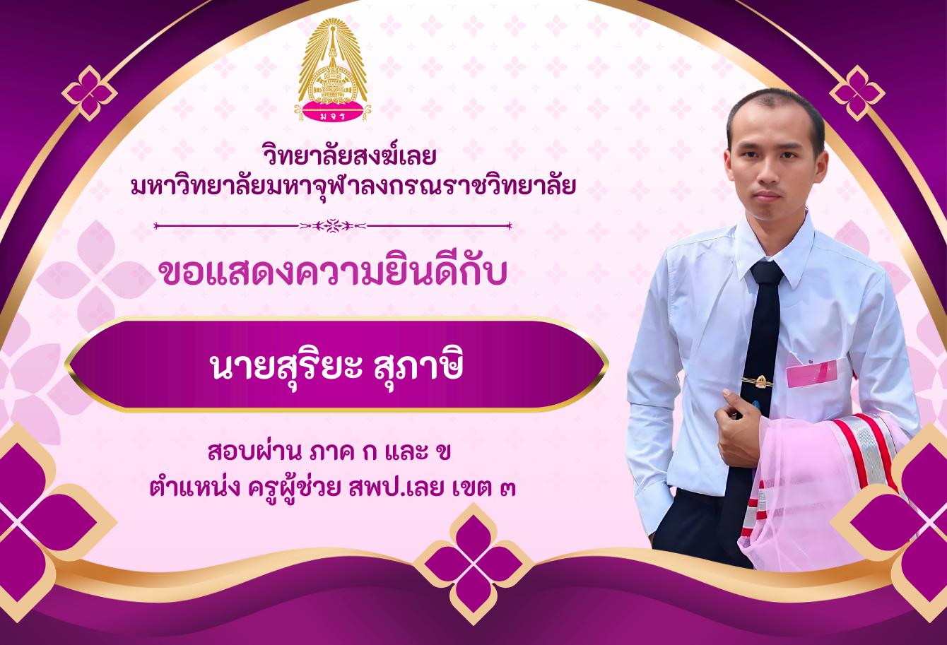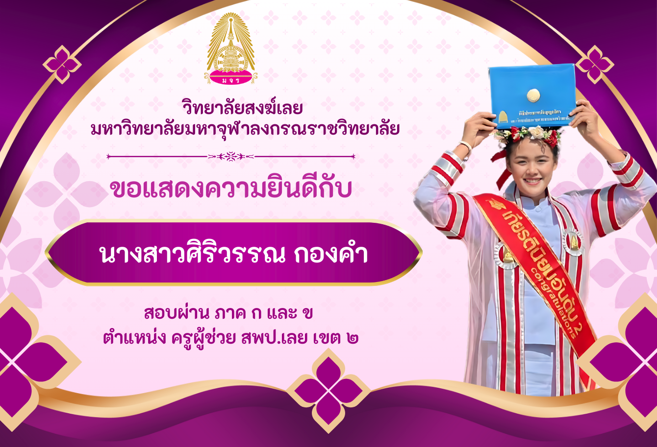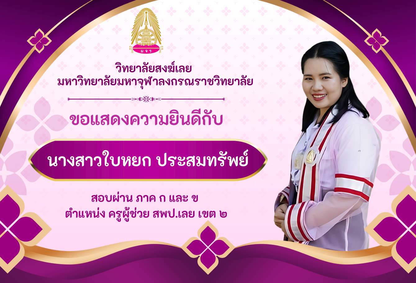 ขอแสดงความยินดีกับศิษย์เก่า สาขาวิชาการสอนภาษาไทย สอบผ่าน ภาค ก และ ข ตำแหน่ง ครูผู้ช่วย ประจำปี ๒๕๖๘