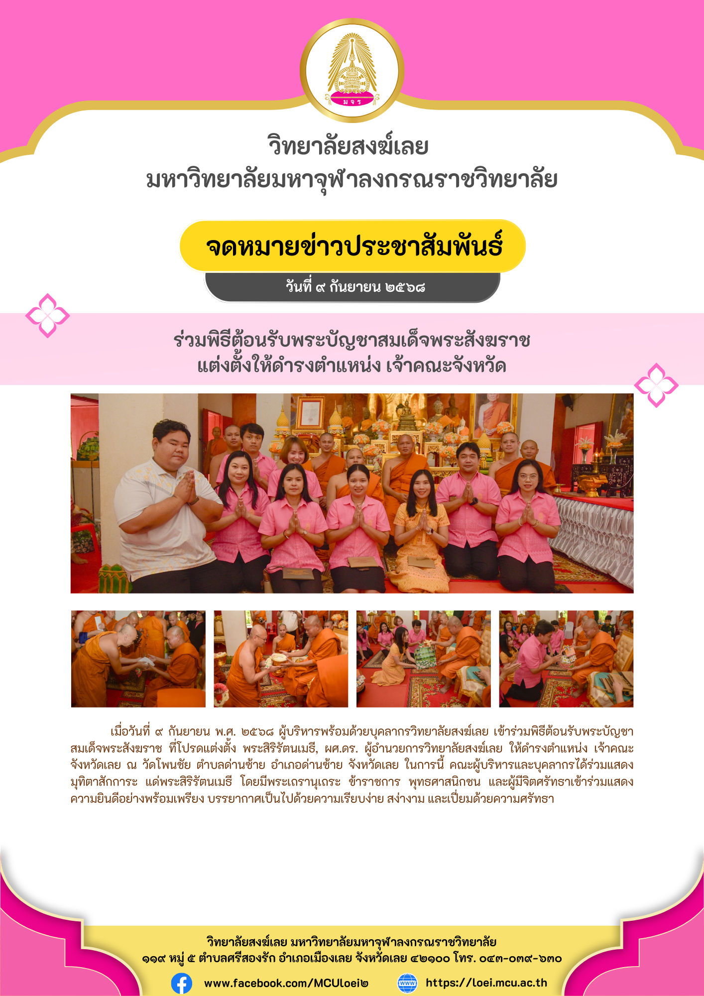 ร่วมพิธีต้อนรับพระบัญชาสมเด็จพระสังฆราช แต่งตั้งให้ดำรงตำแหน่ง เจ้าคณะจังหวัด
