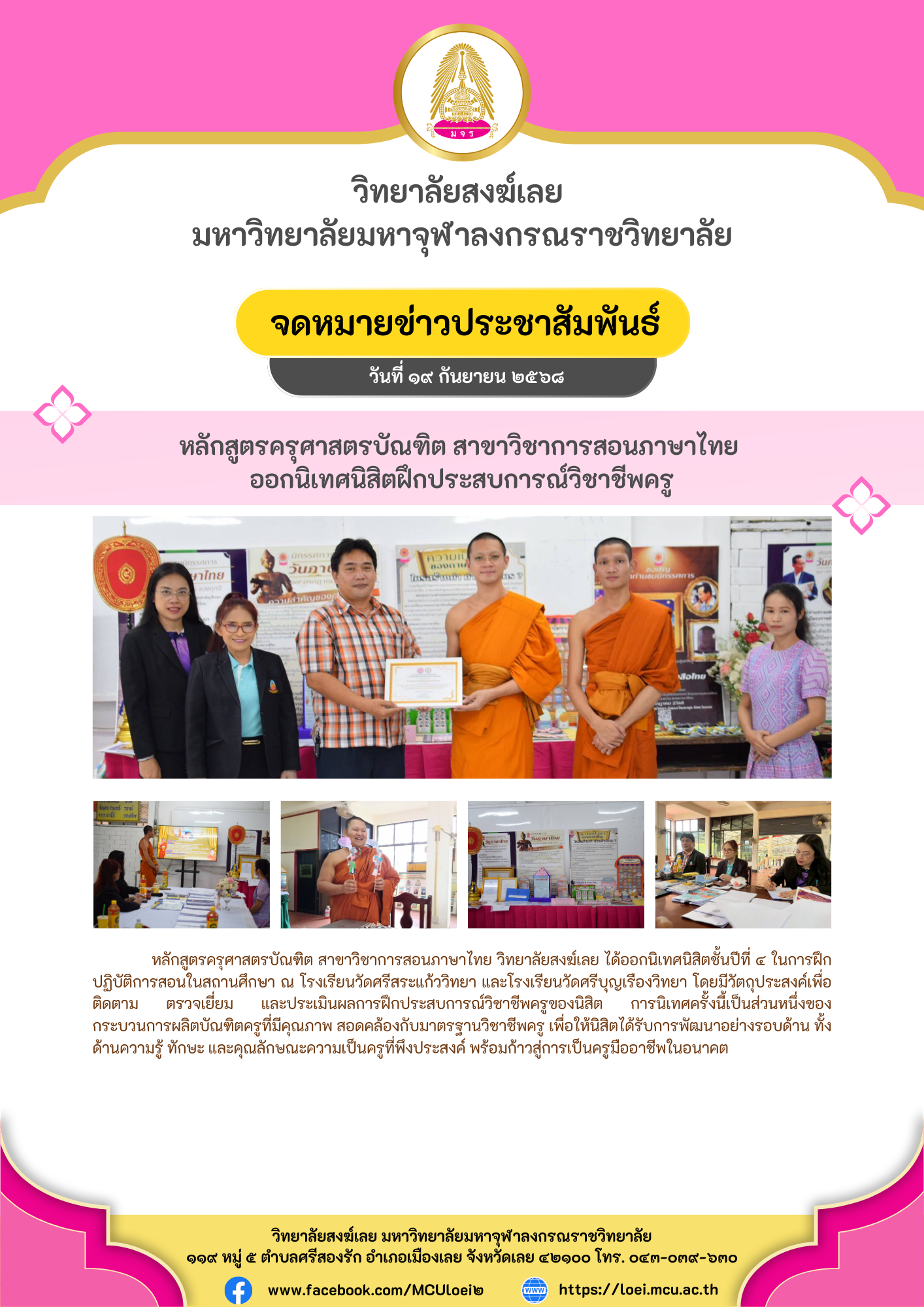 หลักสูตรครุศาสตรบัณฑิต สาขาวิชาการสอนภาษาไทย ออกนิเทศนิสิตฝึกประสบการณ์วิชาชีพครู