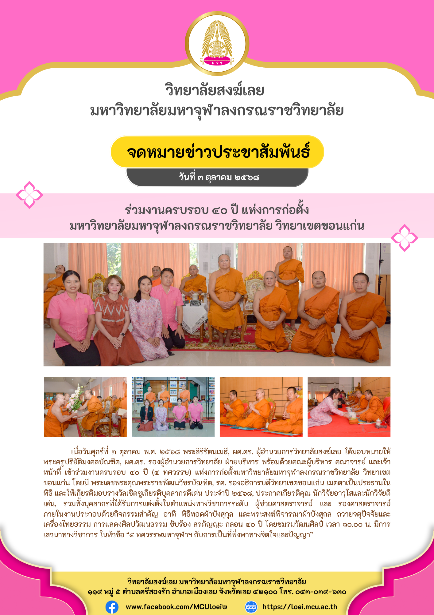 ร่วมงานครบรอบ ๔๐ ปี แห่งการก่อตั้งมหาวิทยาลัยมหาจุฬาลงกรณราชวิทยาลัย วิทยาเขตขอนแก่น