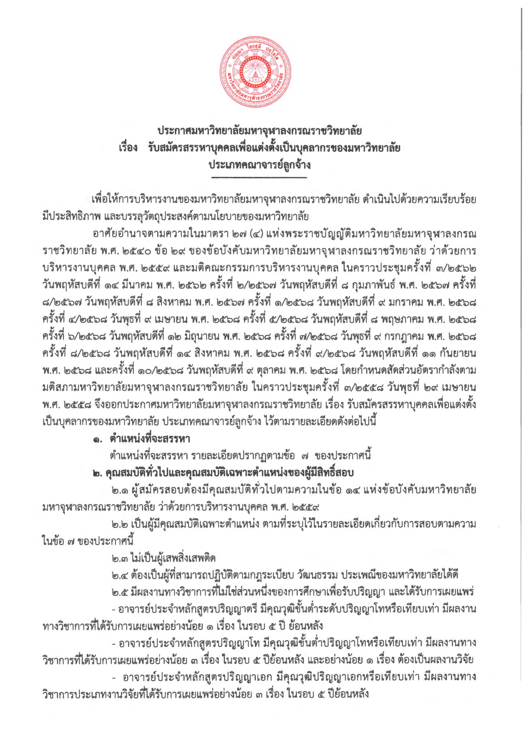 ประกาศรับสมัครสอบคัดเลือกบุคคลเพื่อแต่งตั้งเป็นบุคลากรของมหาวิทยาลัย ประเภท คณาจารย์ลูกจ้าง