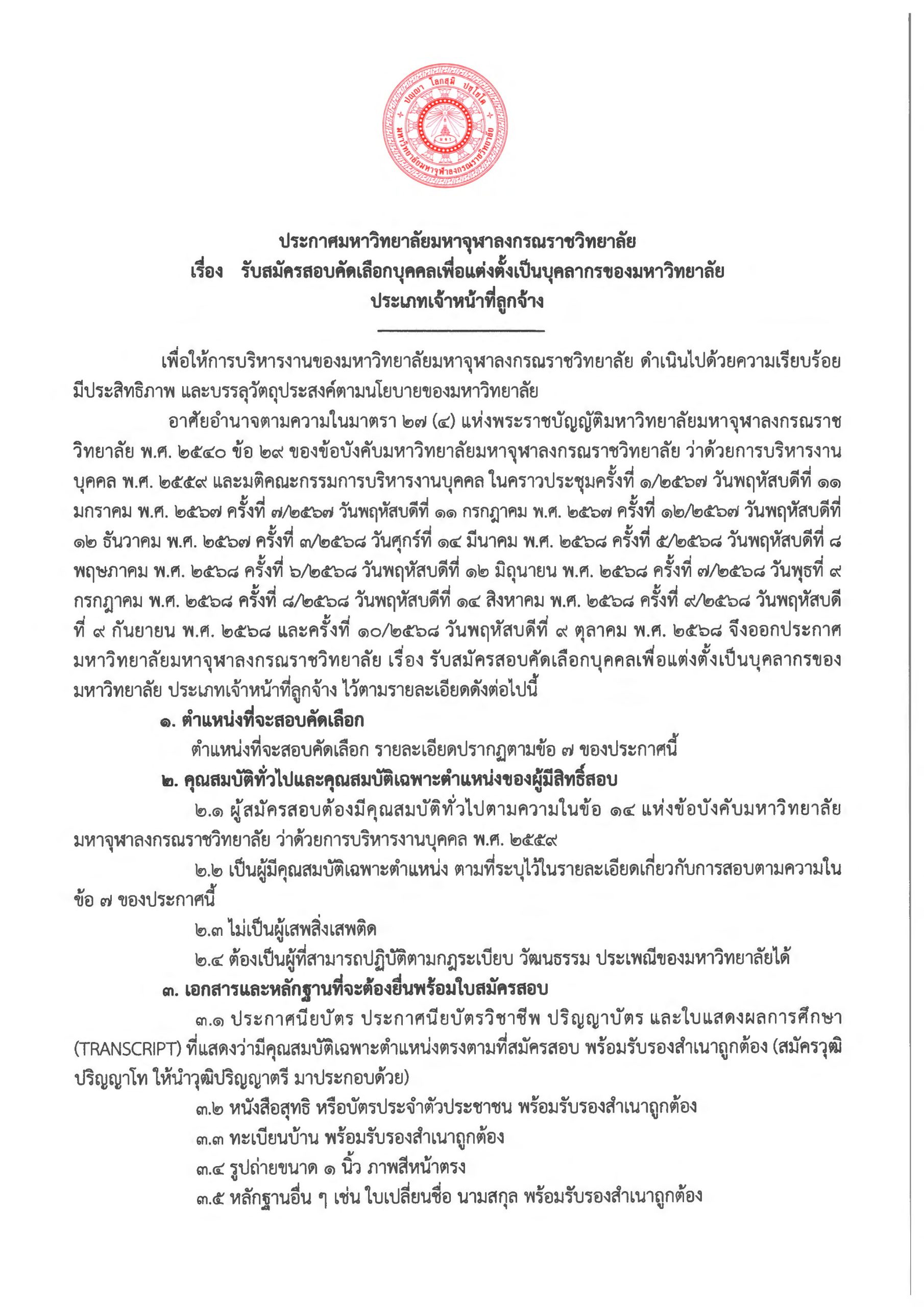 ประกาศรับสมัครสอบคัดเลือกบุคคลเพื่อแต่งตั้งเป็นบุคลากรของมหาวิทยาลัย ประเภท เจ้าหน้าที่ลูกจ้าง