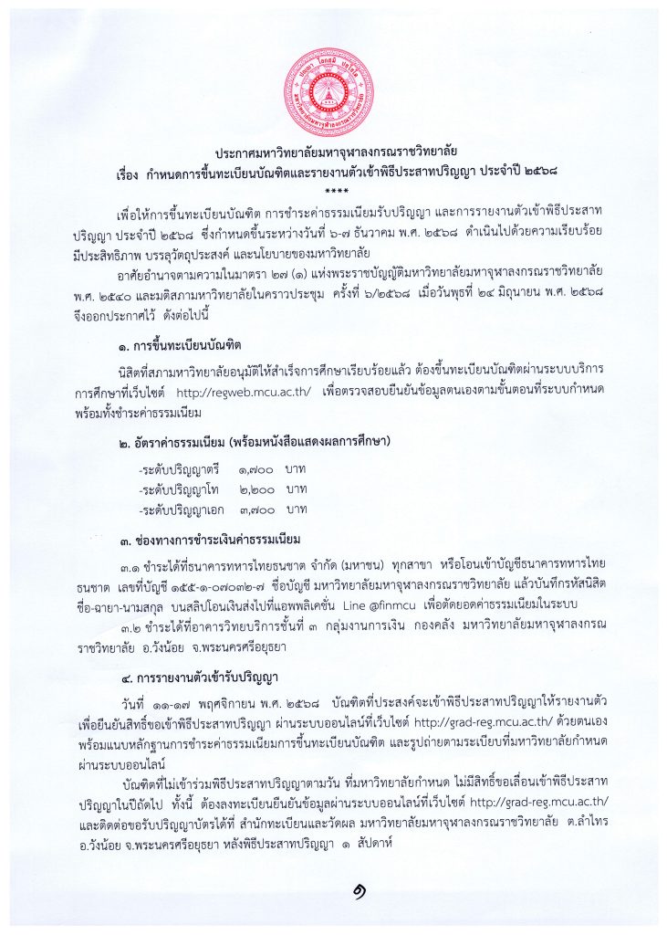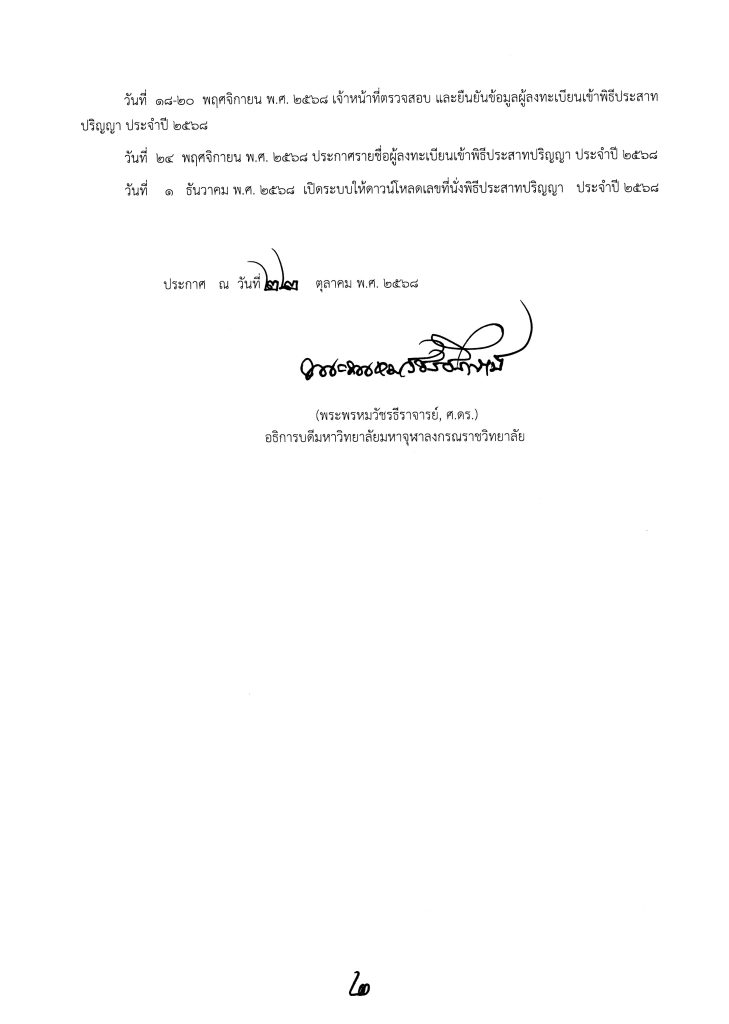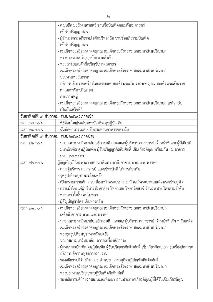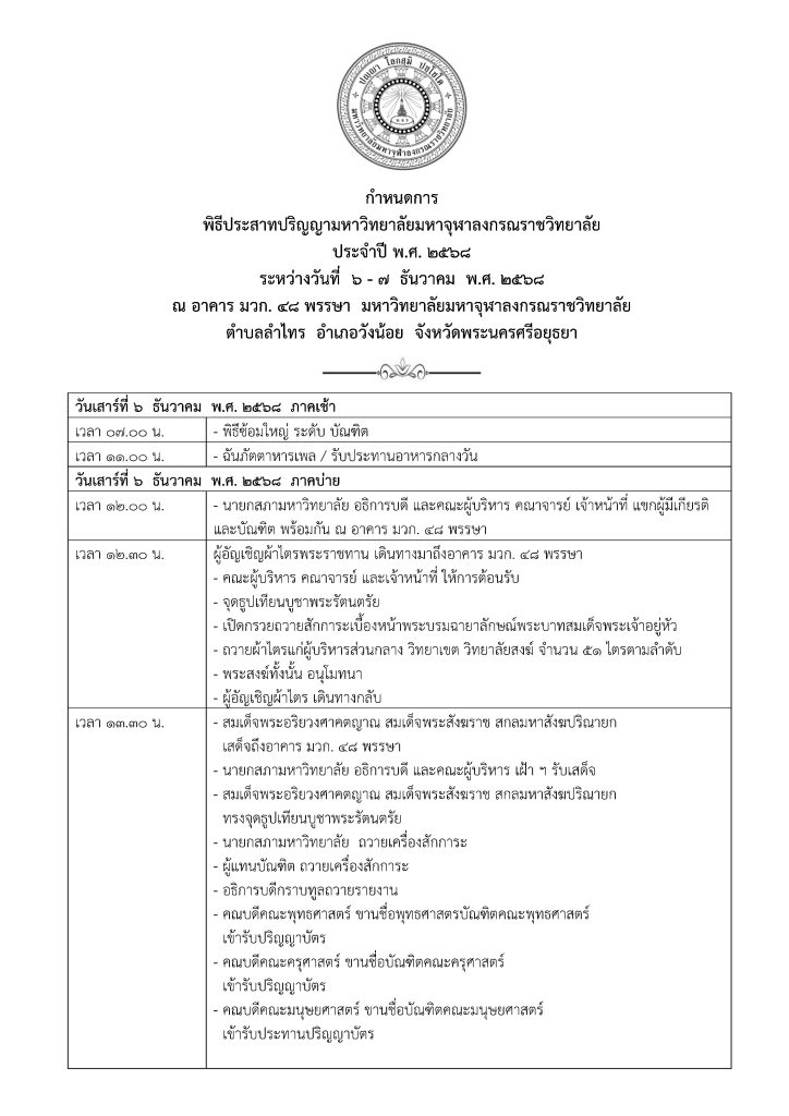 กำหนดการพิธีประสาทปริญญา ประจำปีพุทธศักราช ๒๕๖๘