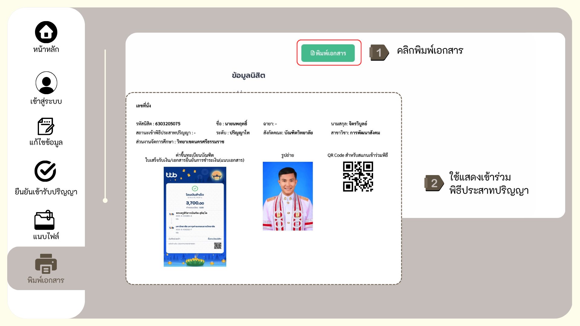 ขั้นตอนการลงทะเบียนเข้าพิธีประสาทปริญญา ประจำปี ๒๕๖๘