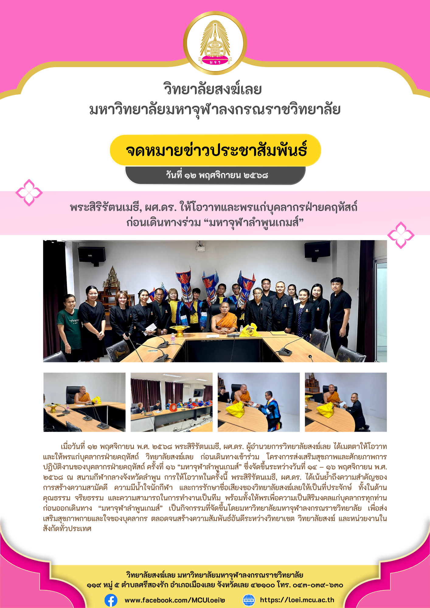 พระสิริรัตนเมธี, ผศ.ดร. ให้โอวาทและพรแก่บุคลากรฝ่ายคฤหัสถ์ ก่อนเดินทางร่วม “มหาจุฬาลำพูนเกมส์”