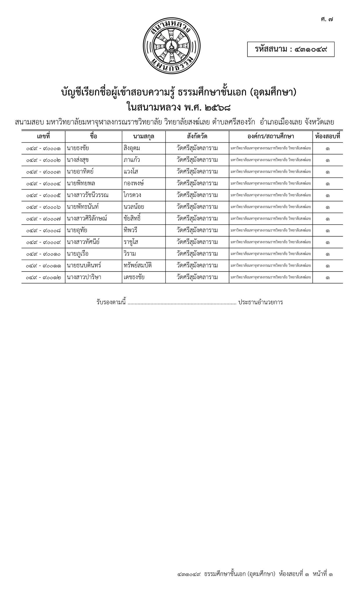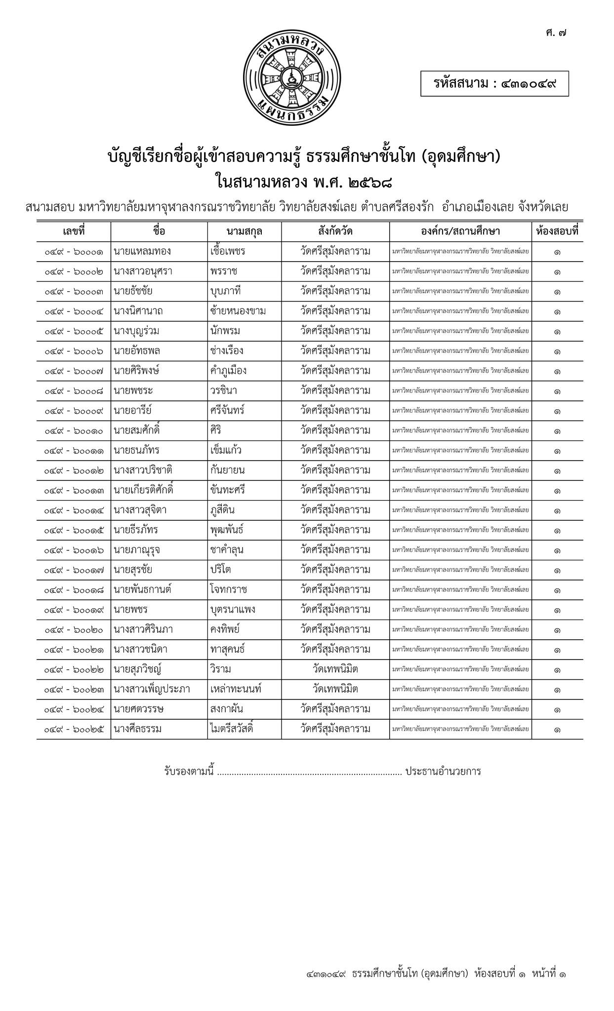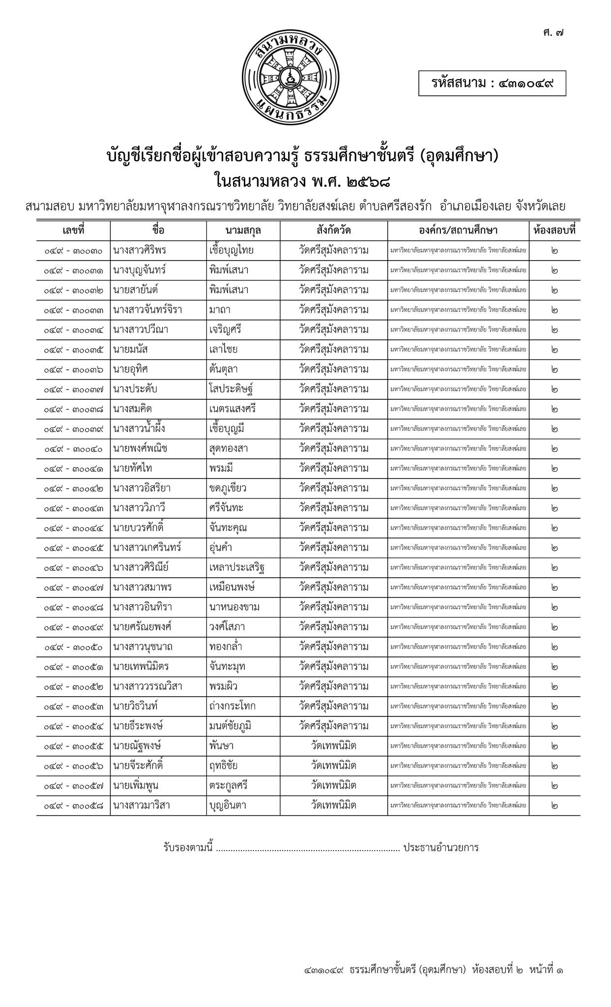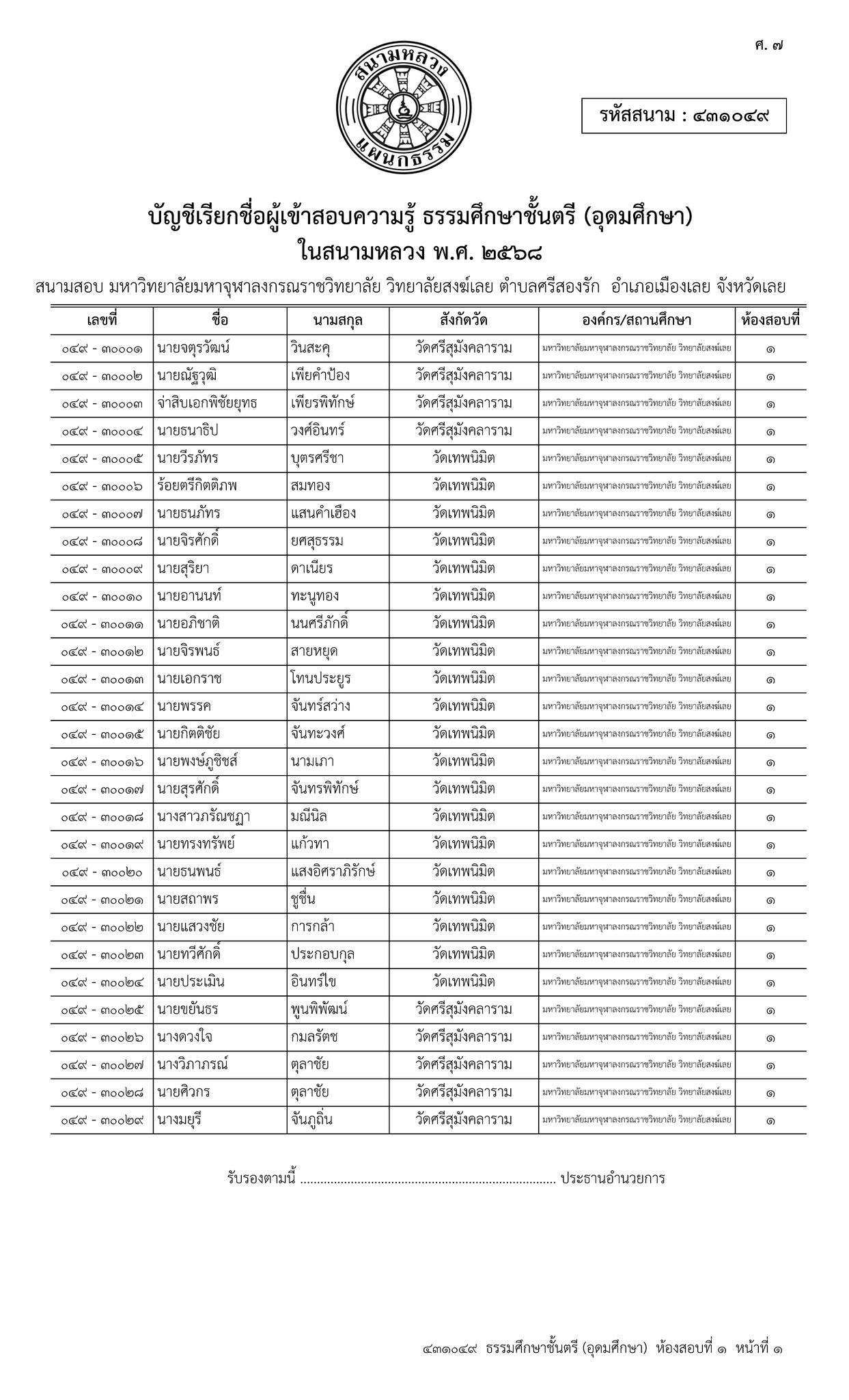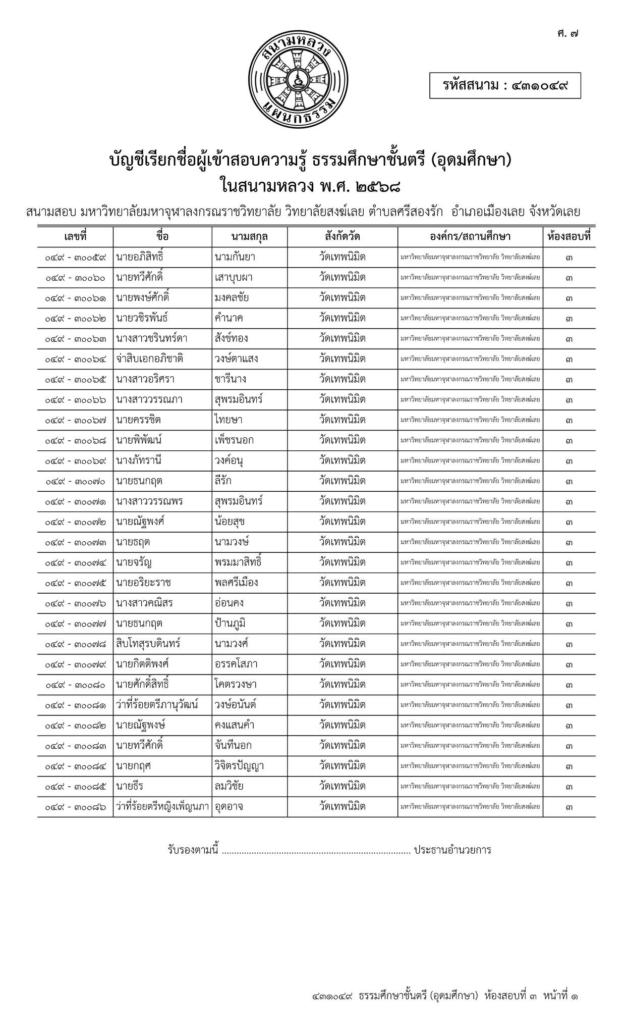 ขอเชิญ บุคลากร และนิสิต เข้าร่วมสอบธรรมสนามหลวง (ธรรมศึกษาชั้น ตรี – โท – เอก) เพื่อ น้อมถวายเป็นราชกุศล