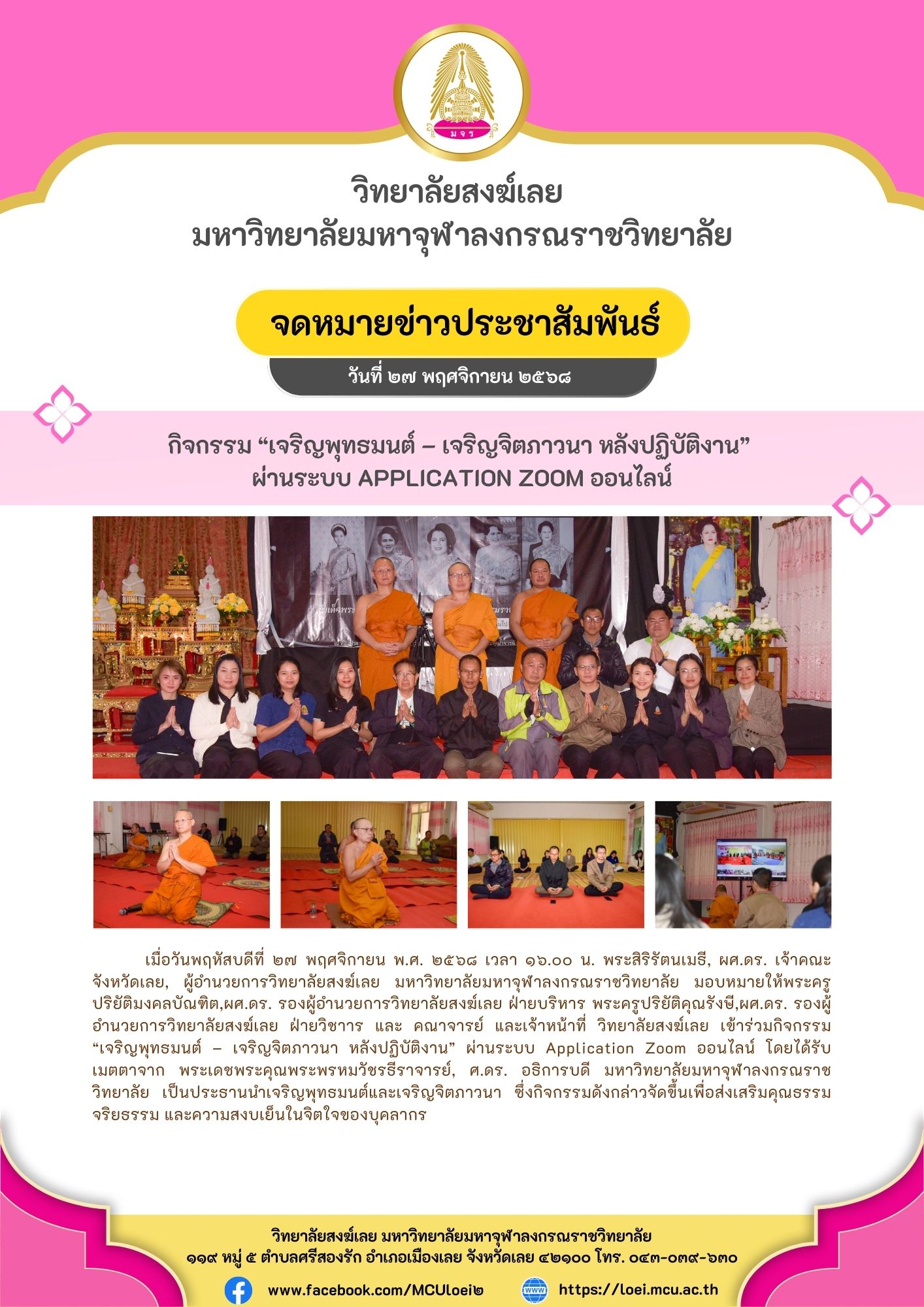 กิจกรรม “เจริญพุทธมนต์ – เจริญจิตภาวนา หลังปฏิบัติงาน” ผ่านระบบ Application Zoom ออนไลน์