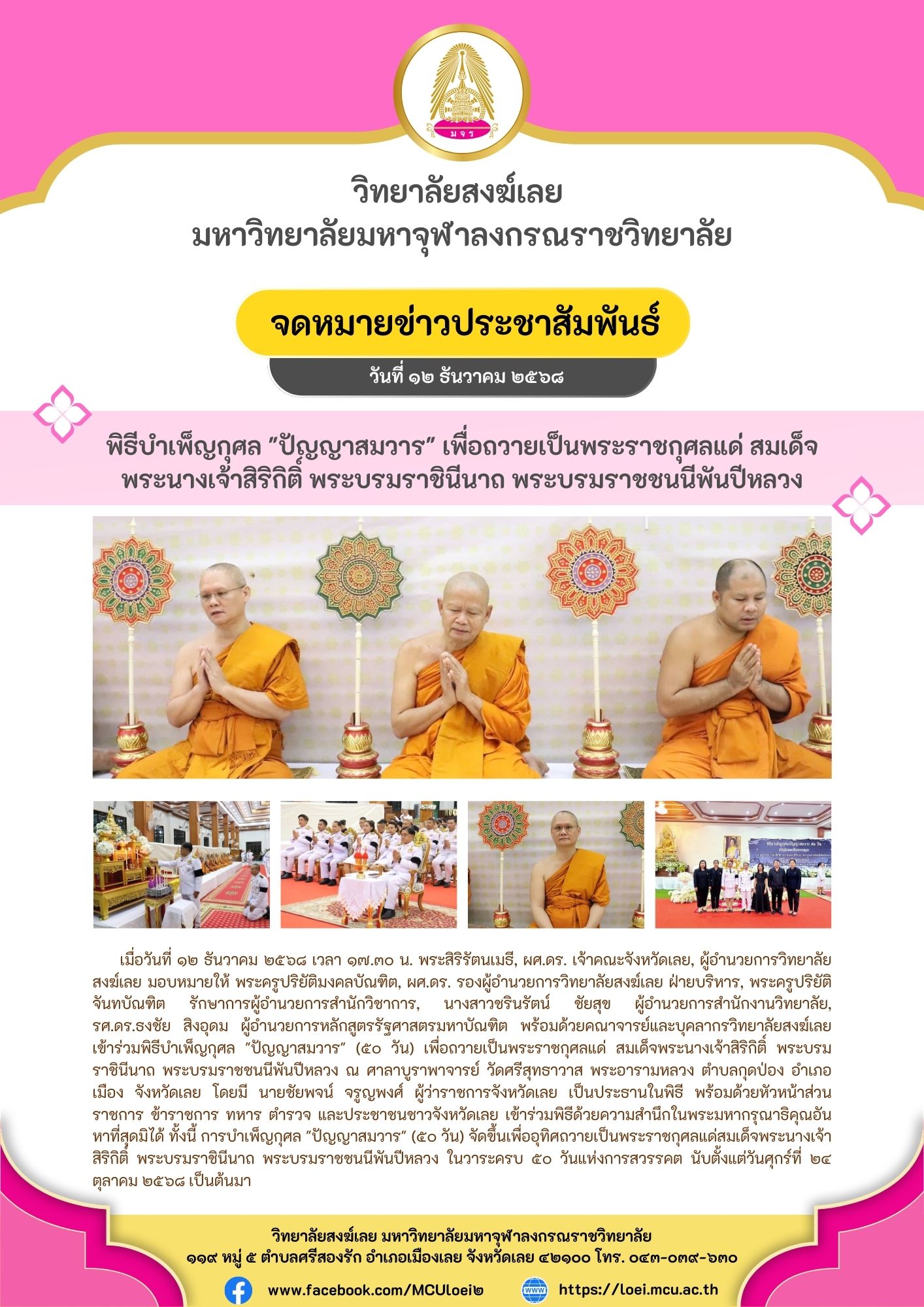 พิธีบำเพ็ญกุศล “ปัญญาสมวาร” เพื่อถวายเป็นพระราชกุศลแด่ สมเด็จพระนางเจ้าสิริกิติ์ พระบรมราชินีนาถ พระบรมราชชนนีพันปีหลวง