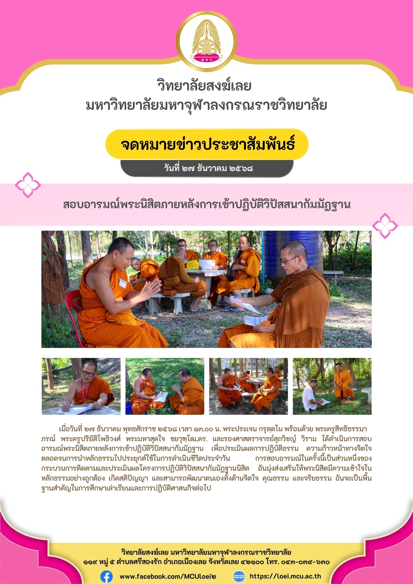 สอบอารมณ์พระนิสิตภายหลังการเข้าปฏิบัติวิปัสสนากัมมัฏฐาน