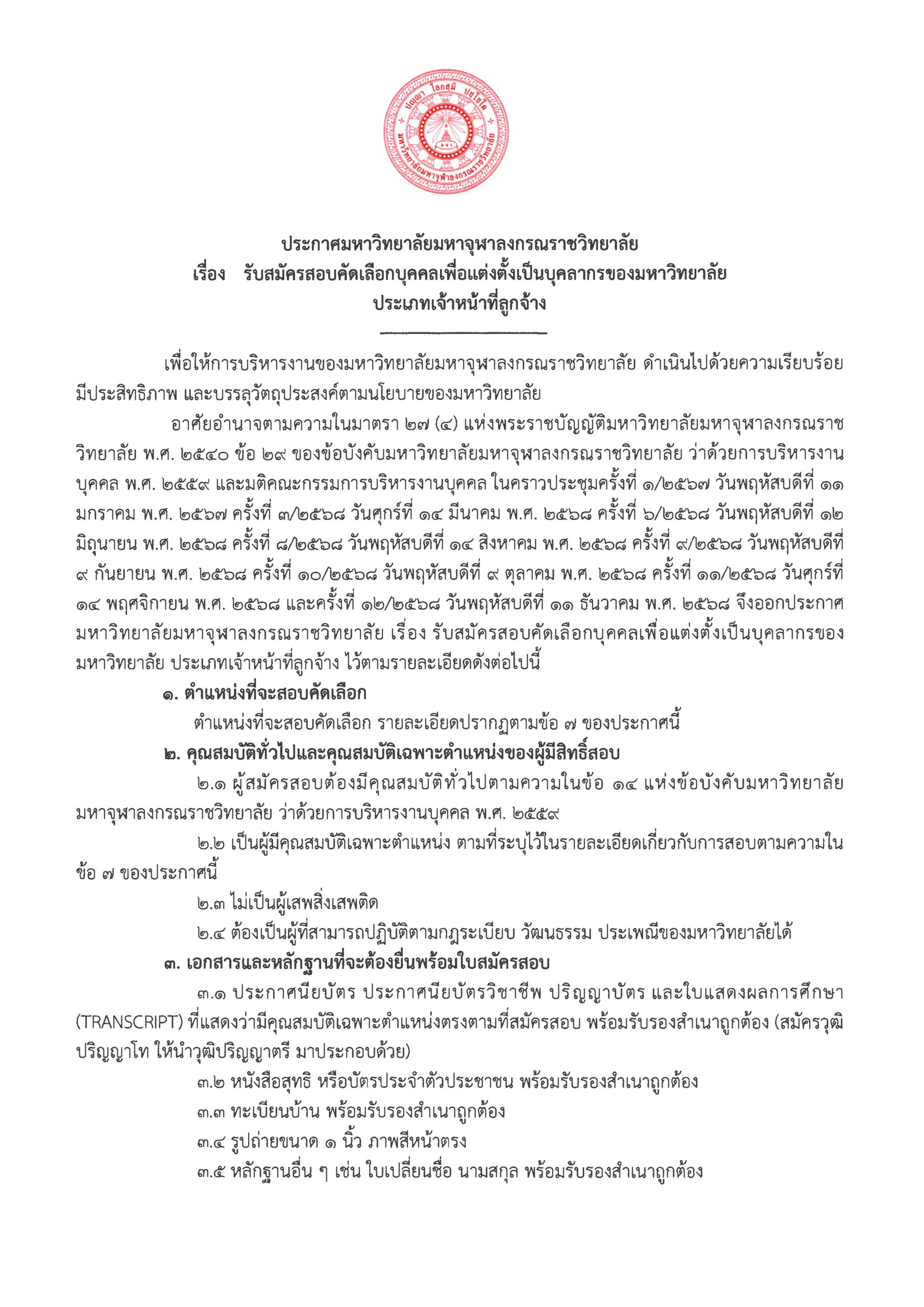 ประกาศรับสมัครสอบคัดเลือกบุคคลเพื่อบรรจุและแต่งตั้งเป็นบุคลากรของมหาวิทยาลัย ครั้งที่ ๑/๒๕๖๙