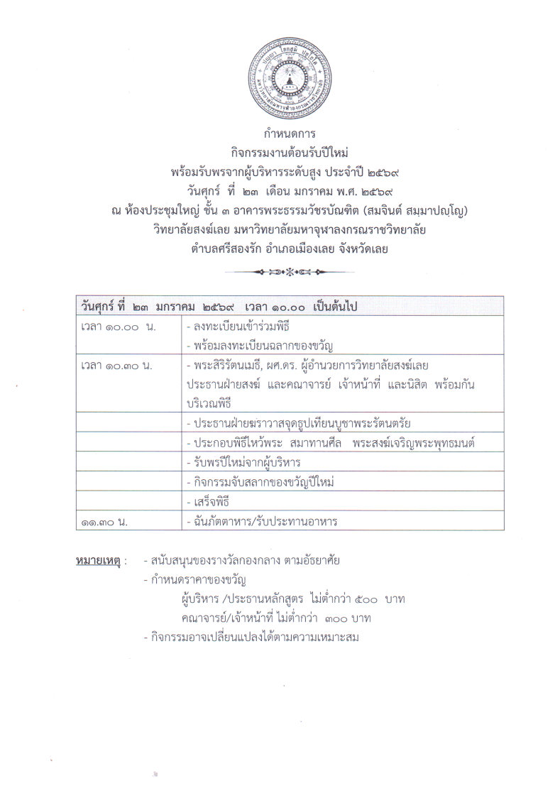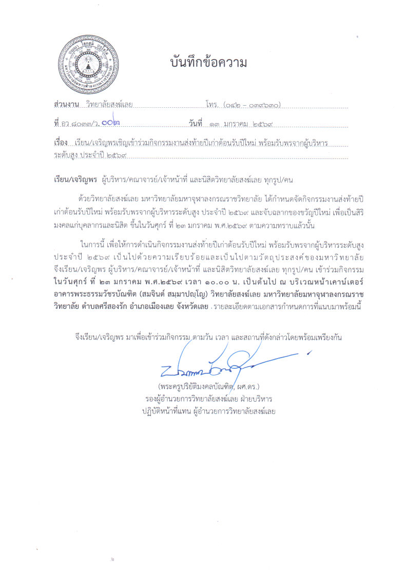 ขอนิมนต์/เชิญ เข้าร่วมกิจกรรมต้อนรับปีใหม่ ๒๕๖๙