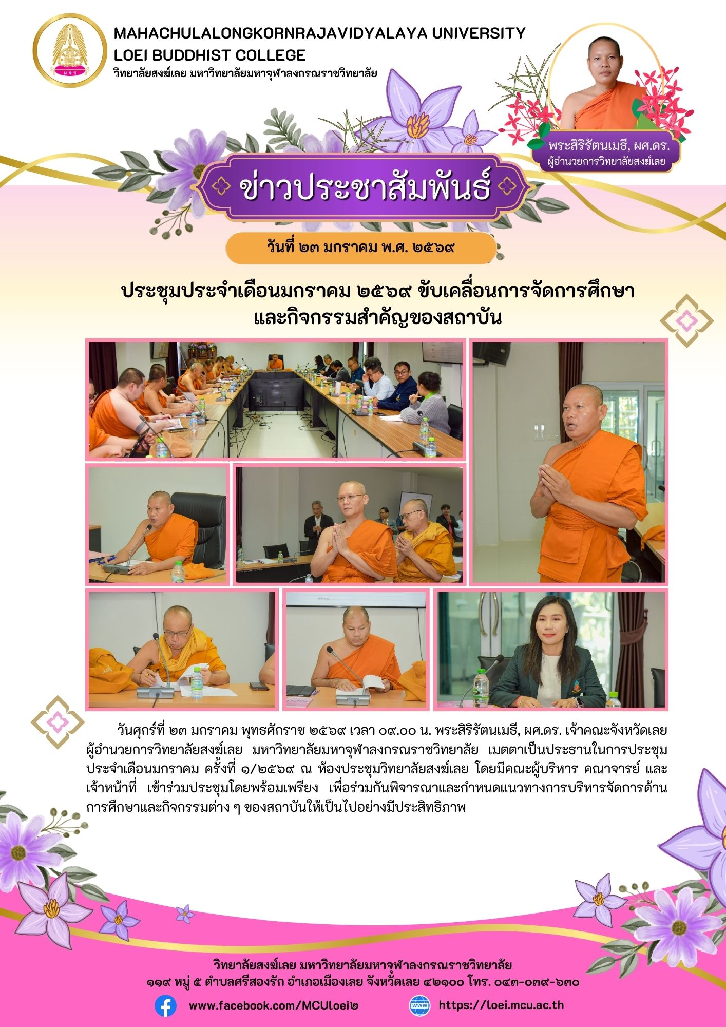 ประชุมประจำเดือนมกราคม ๒๕๖๙ ขับเคลื่อนการจัดการศึกษาและกิจกรรมสำคัญของสถาบัน
