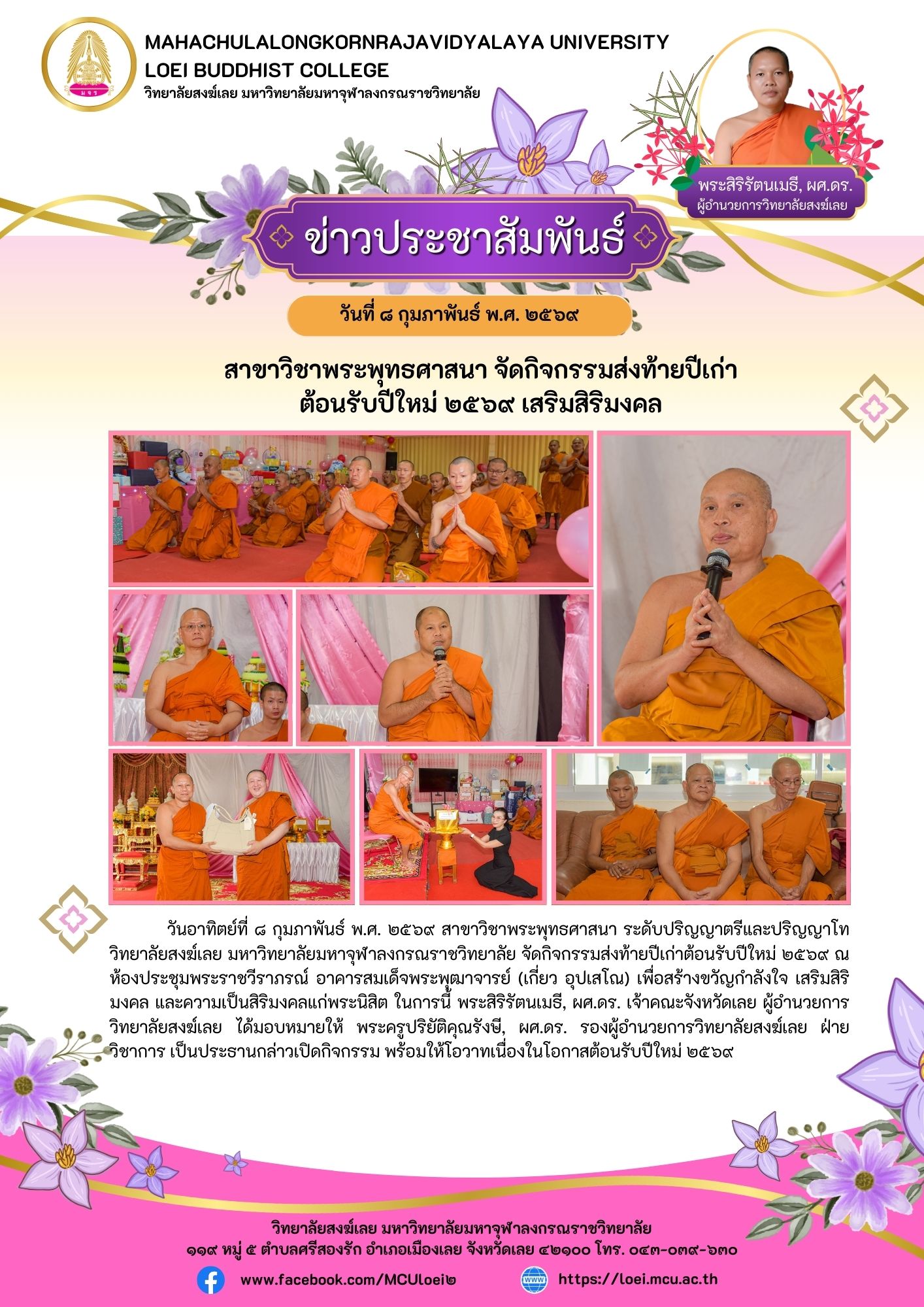 สาขาวิชาพระพุทธศาสนา จัดกิจกรรมส่งท้ายปีเก่าต้อนรับปีใหม่ ๒๕๖๙ เสริมสิริมงคล