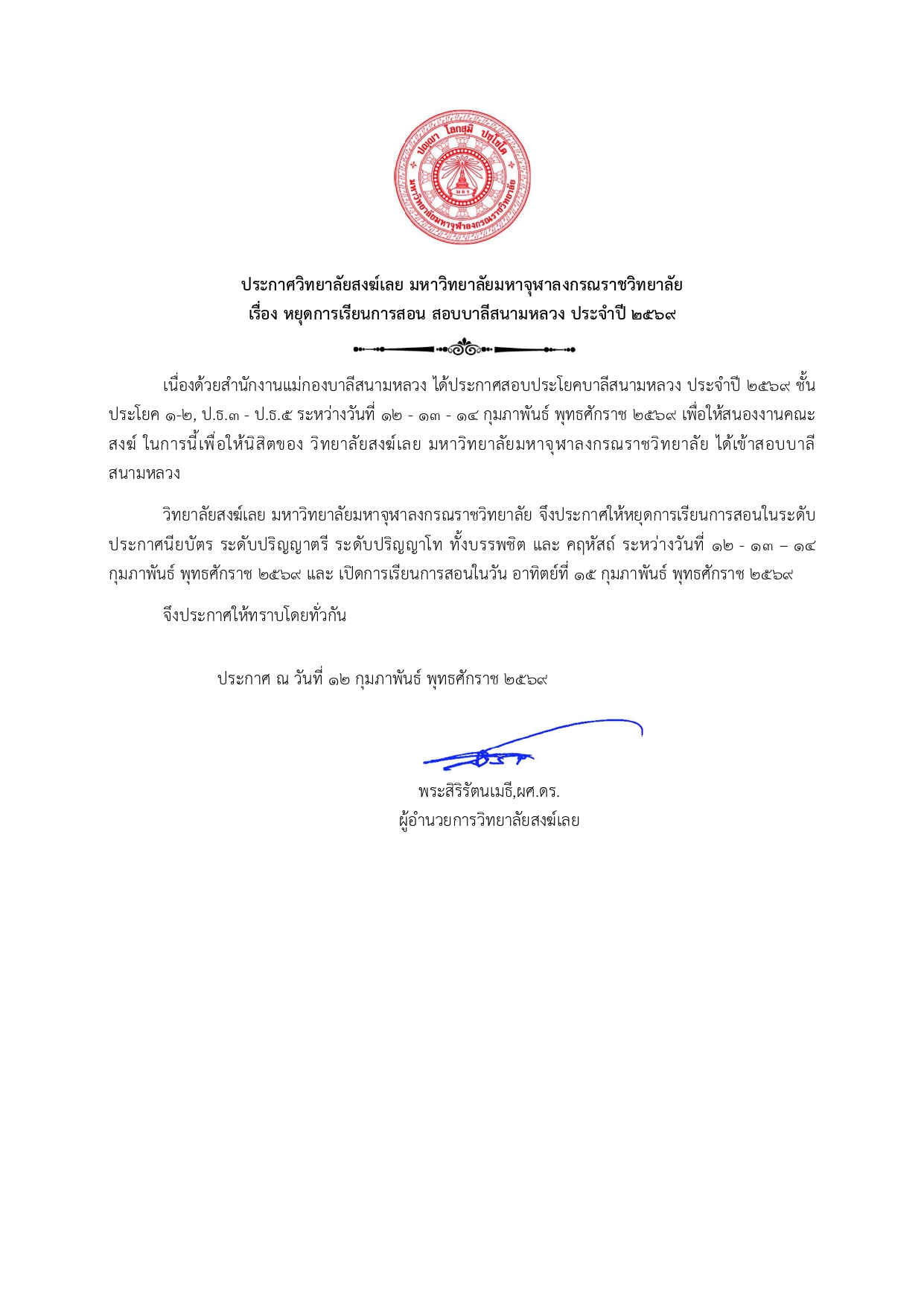 ประกาศหยุดการเรียนการสอน สอบบาลีสนามหลวง (ครั้งหลัง) ประจำปี ๒๕๖๙