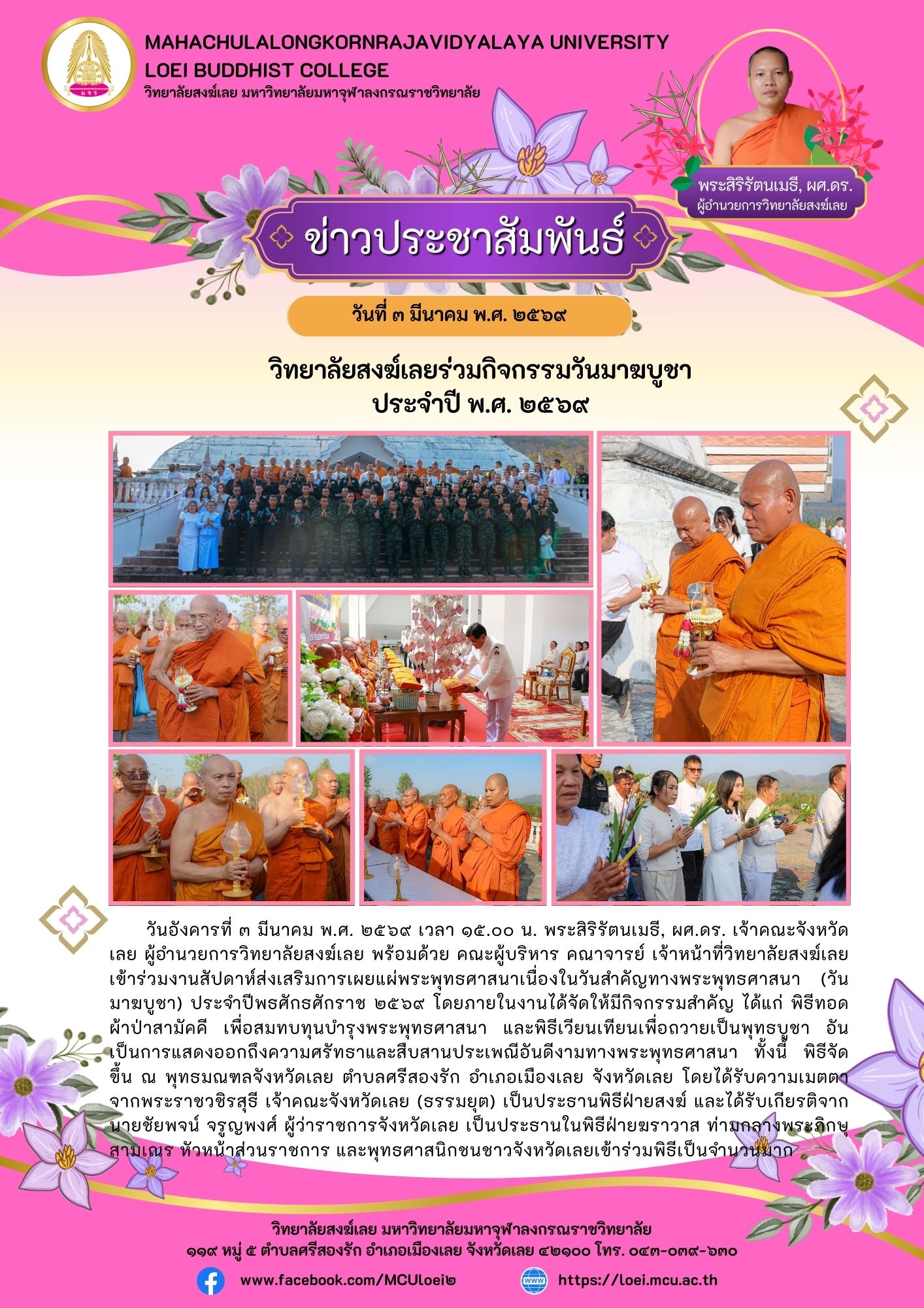 วิทยาลัยสงฆ์เลยร่วมกิจกรรมวันมาฆบูชา ประจำปี พ.ศ. ๒๕๖๙