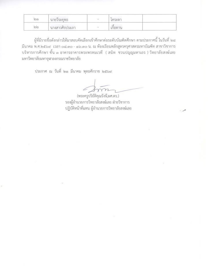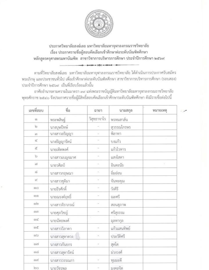 ประกาศรายชื่อมีสิทธิผู้สอบคัดเลือกเข้าศึกษาต่อระดับบัณฑิตศึกษา สาขาวิชาการบริหารการศึกษา ประจำปี ๒๕๖๙