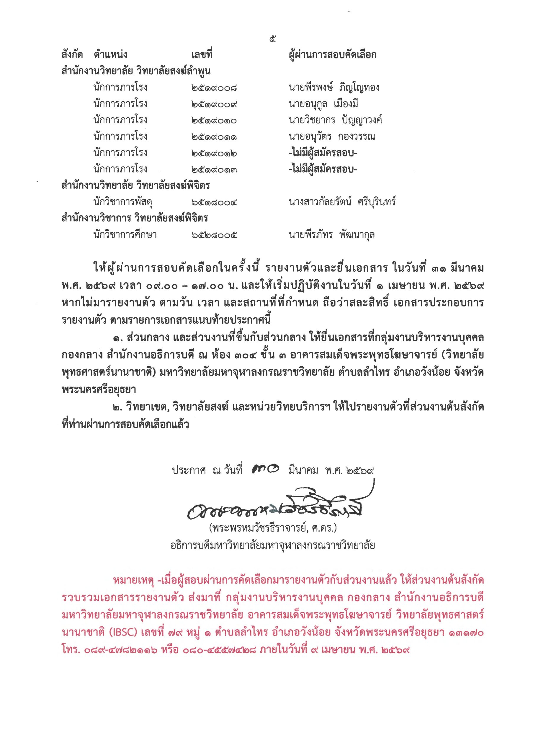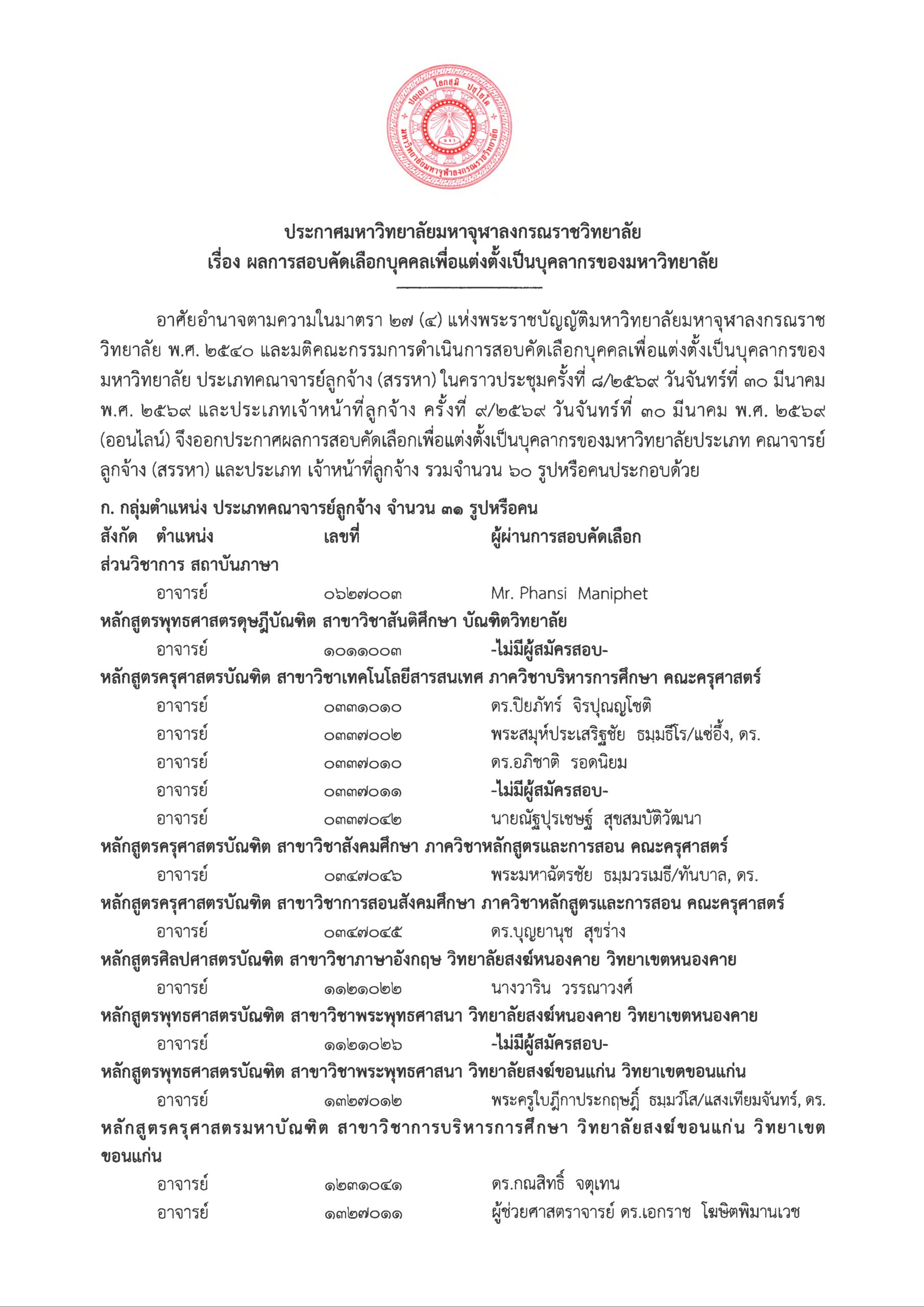 ประกาศผลการสอบคัดเลือกบุคคลเพื่อบรรจุและแต่งตั้งเป็นบุคลากรของมหาวิทยาลัย ครั้งที่ ๒/๒๕๖๙